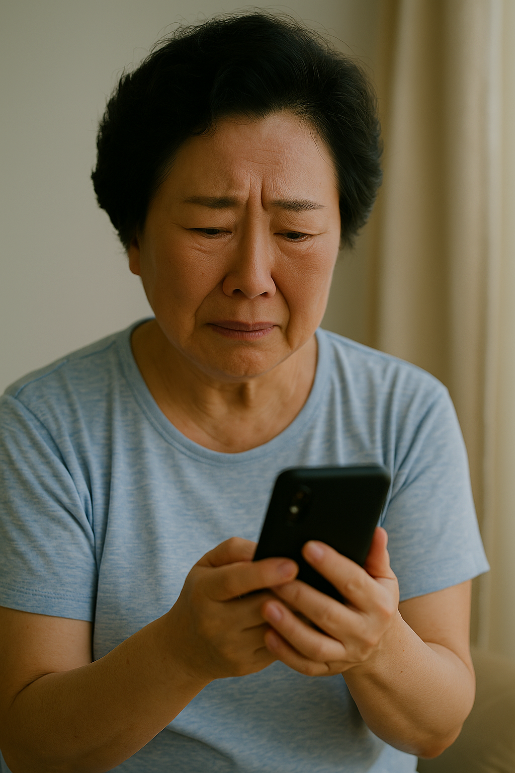 휴대폰 화면을 바라봅니다.