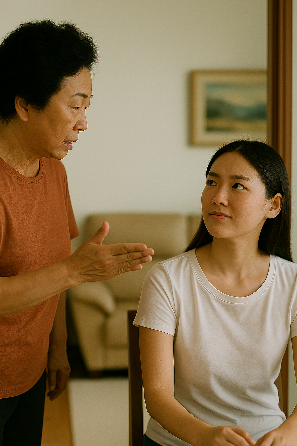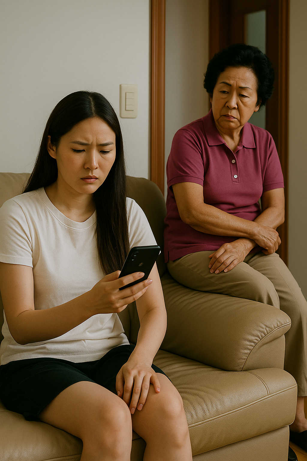 며느리 수진이, 거실에 말없이 앉아